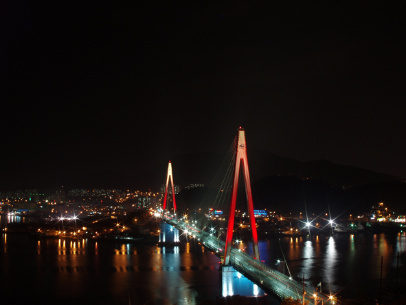 밤엔 돌산대교 경치가 좋아서 사람들이 사진을 많이 찍곤하죠^^