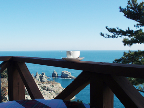 바다가보이는베라다위 찻잔