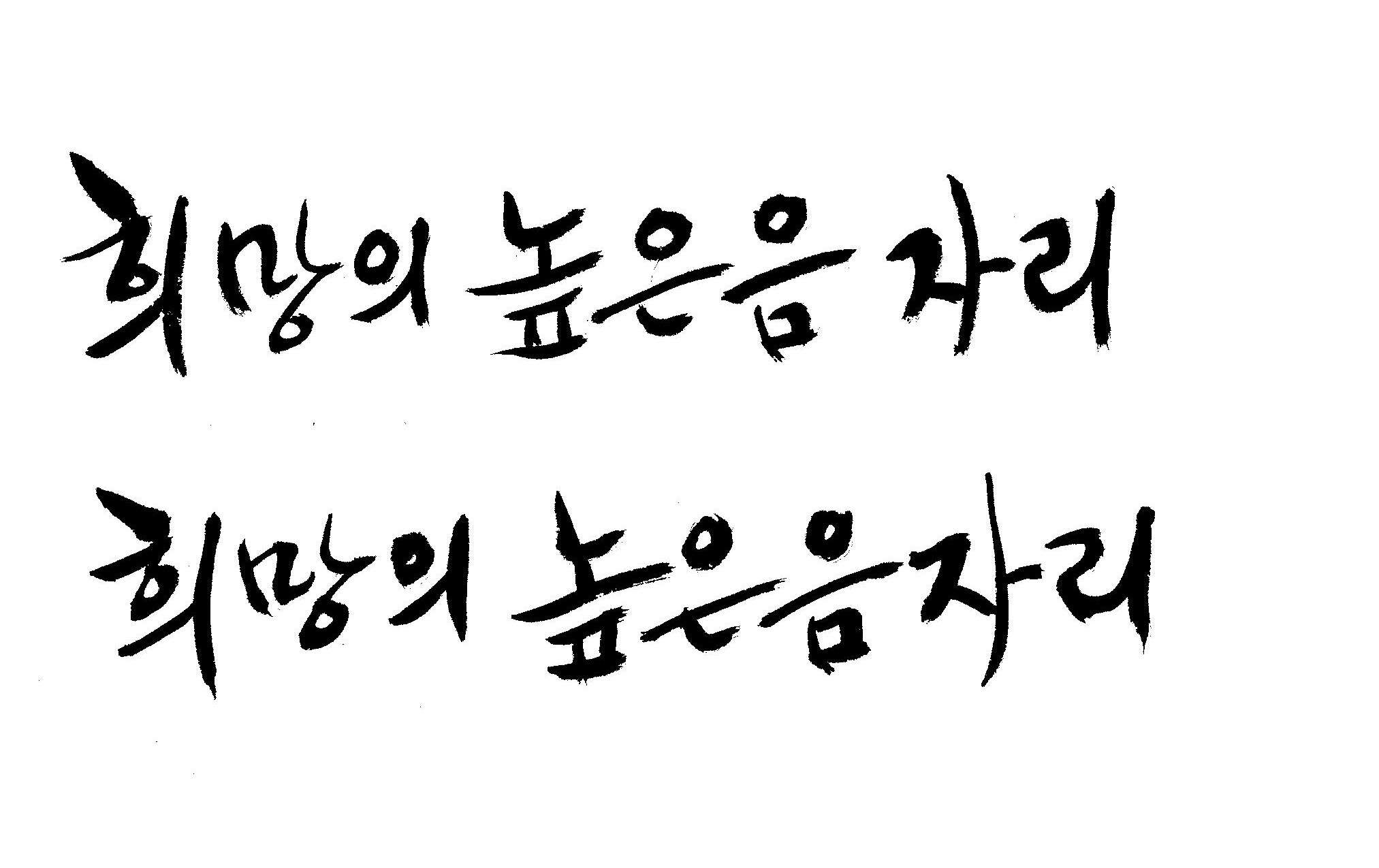 저도 캘리좀부탁이요 ^^;; 김철호 일반 0 6438 2009.01.14 10:59 > > 희망의 높은음자리 > > 감사합니다 ^^ 꼭부탁드려욧 ㅎㅎㅎ > 좋은 글이라서 신경썼는데 만족할 만큼 않나왔네요.. 유용하게 쓰시길...